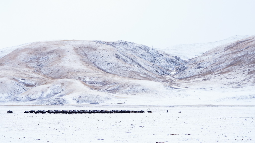 1月29日,牧民在青海省玉樹藏族自治州雜多縣境內(nèi)的草原上放牧。